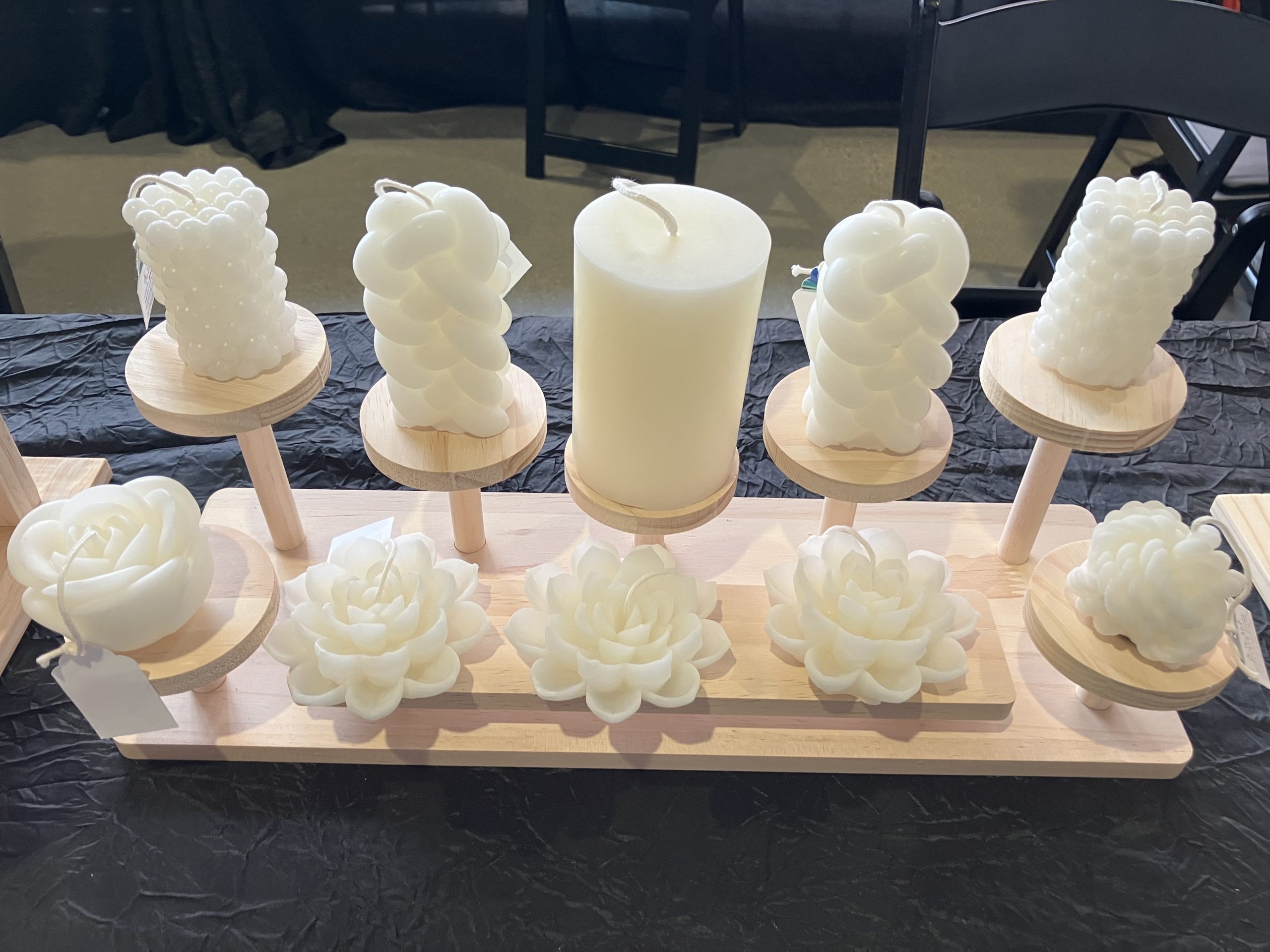 We also create candles in larger sizes, like 4 oz, 8 oz, and 10 oz. We use premium 100% Canadian ivory beeswax to make our tealights, tapers, pillars, and other specialty shapes. We provide custom orders for weddings, events, fundraisers, groups, and organizations.