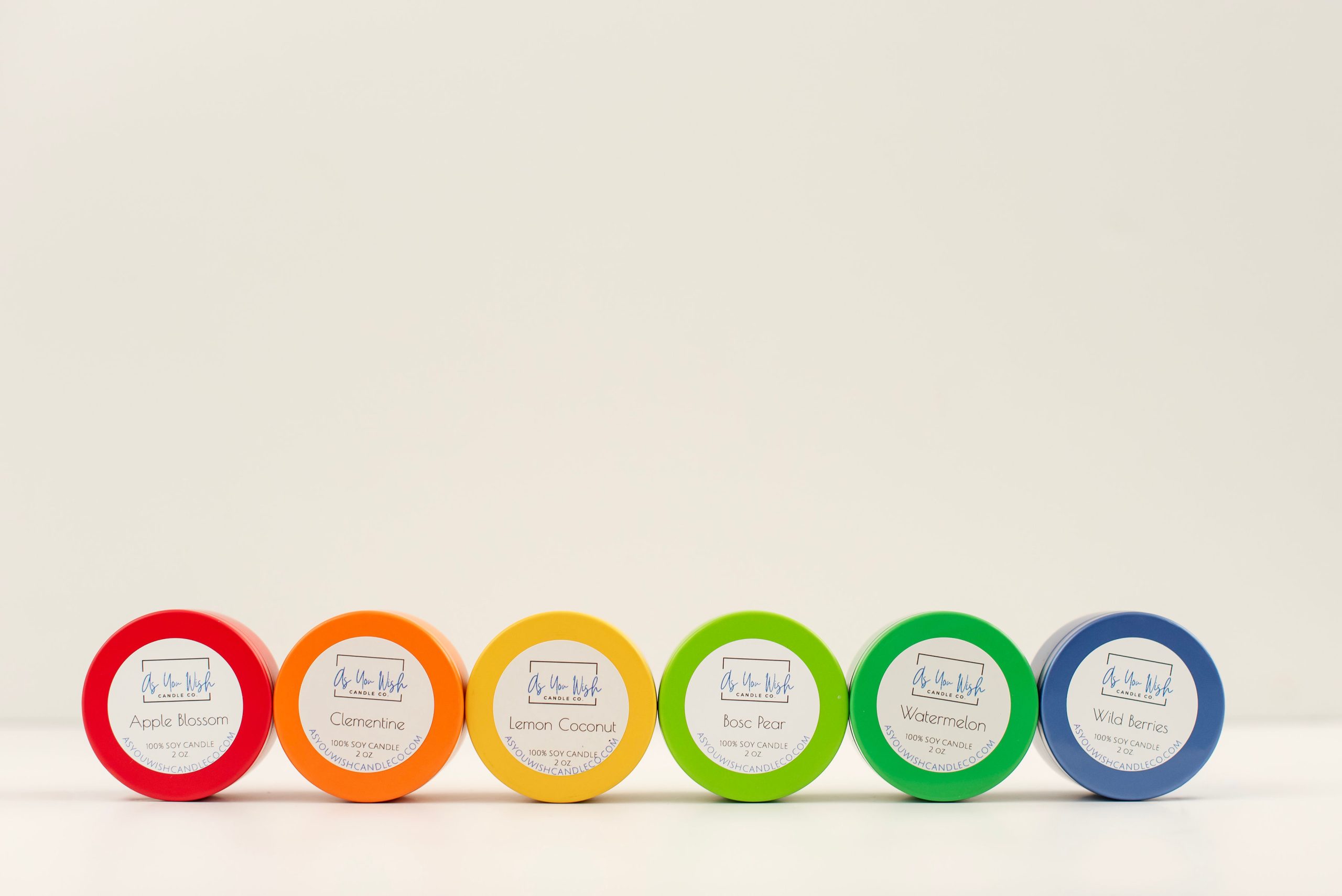 We offer soy wax candles in a variety of vessel sizes and types, including our best selling 2 oz candle tin. Though a small size, these deliver an 8-10 hour burn time. And we offer customization with larger orders, with options for tin colour selection, fragrance selection, and custom labelling. With so many options, we also curate our mini candles into themed collections – multi-candle gift boxes, featuring our 2 oz. candle tins.