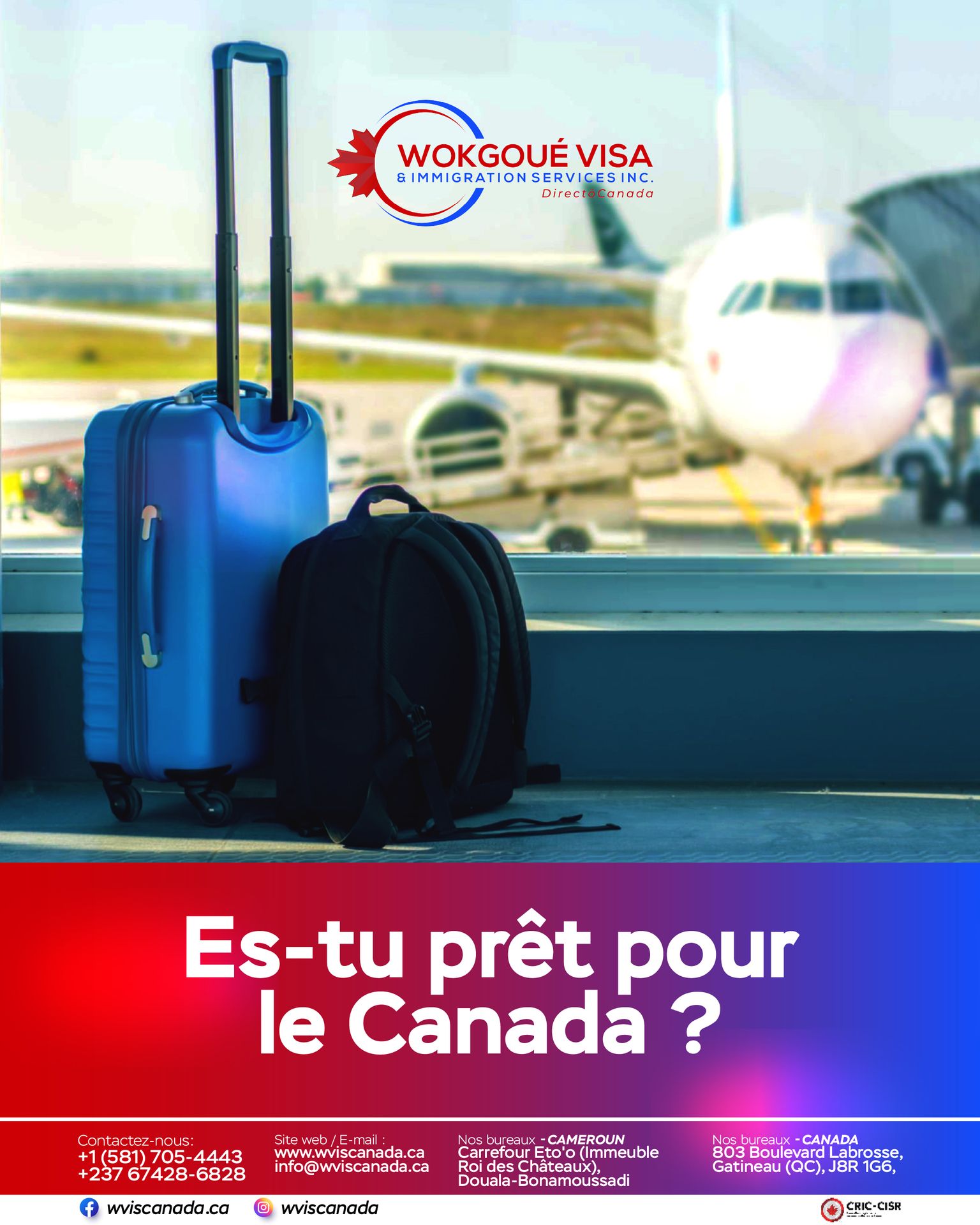 Consultant Réglementé en Immigration Canadienne (CRIC), titulaire du permis R708543 délivré par le Collège des Consultants en Immigration et en Citoyenneté (CCIC), j’accompagne particuliers, familles et entreprises dans leurs démarches d’immigration au Canada.